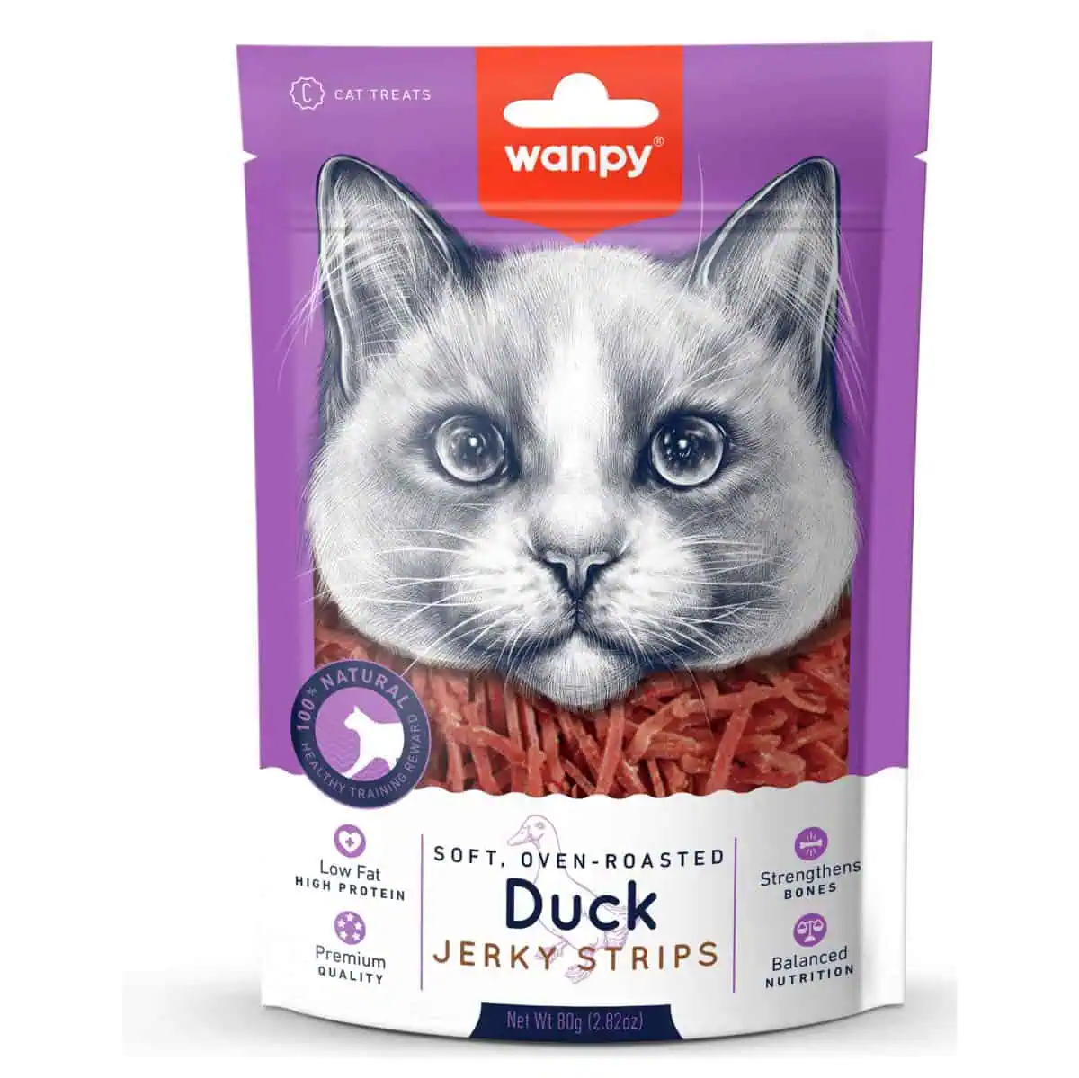 قطتك لن ترفض أبدًا تجربة شيء مميز إذا كان يختلف عن طعامها اليومي بنكهة ورائحة لا تقاوم. شرائح وانبي جيركي البط تقدم لحيوانك الأليف طعام لحم عالي الجودة خالي من النكهات والألوان الاصطناعية ومنخفض في الملح كمادة حافظة طبيعية. مزيج من شرائح البط والدجاج يُخبز في الفرن ويكتسب طعمًا مشهيًا من لحم الدواجن المجفف الطبيعي، كما لو كنت تحضر مكافآت مجففة للقطط بيديك.
