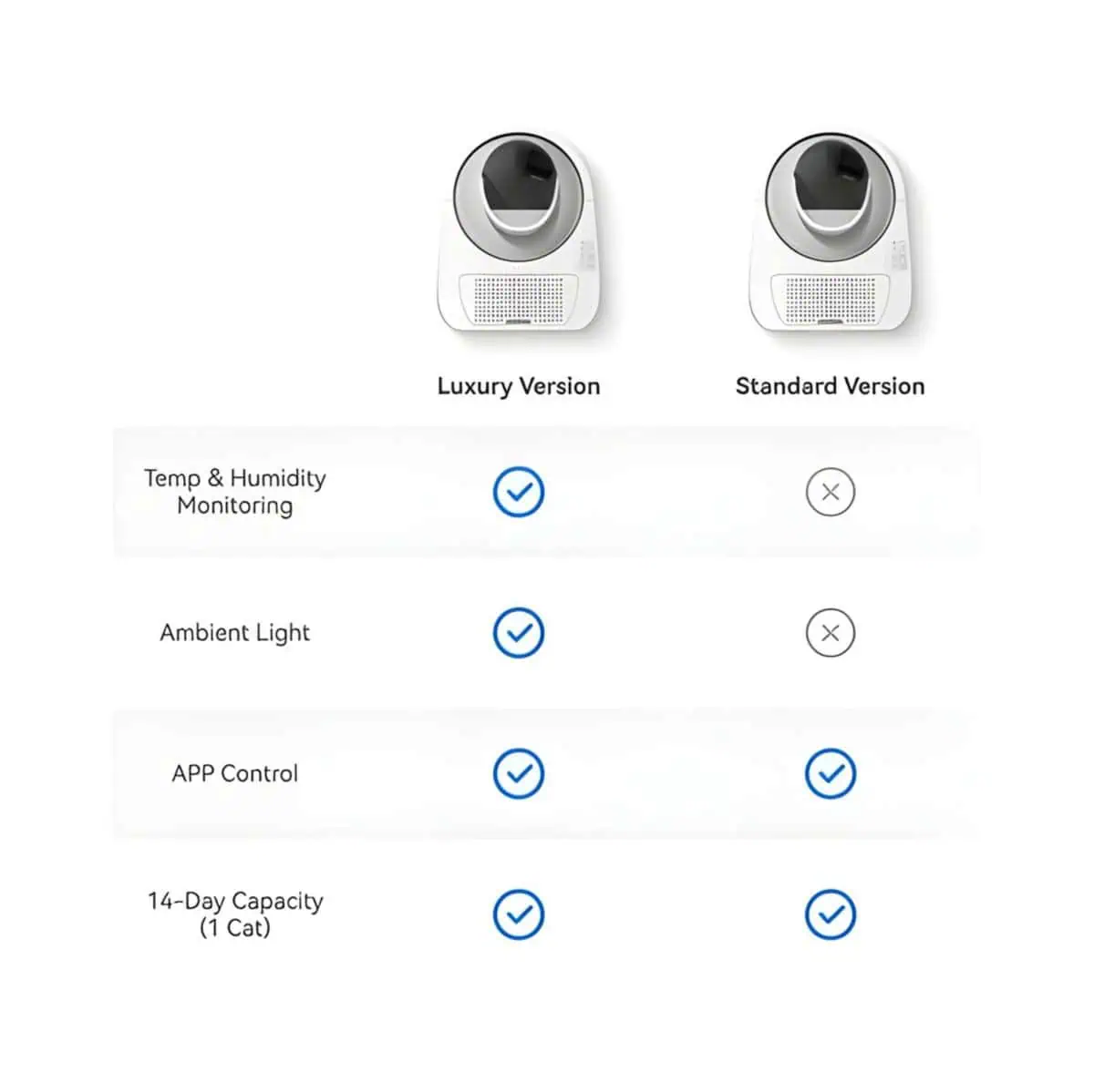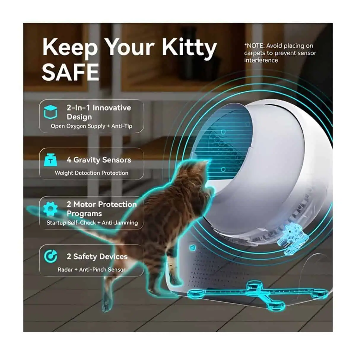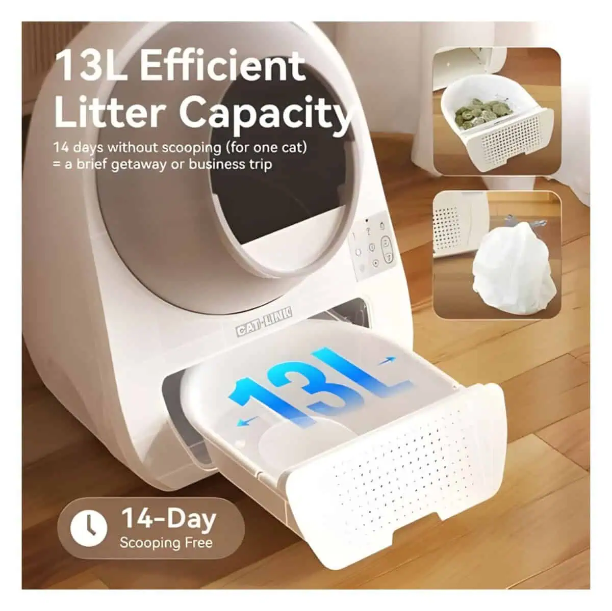 على عكس صناديق الرمل التلقائية الأخرى، يركز على النظافة بدون مجهود مع نظام إزالة الروائح بأربع طبقات ووضع تنظيف عميق باللمسة الواحدة لصيانة سهلة. مثالي للمنازل متعددة القطط، مع تصميم واسع ومتين يتيح لكل قطة استخدامه براحة، بينما تضمن الحساسات الذكية تشغيلًا آمنًا ودقيقًا.