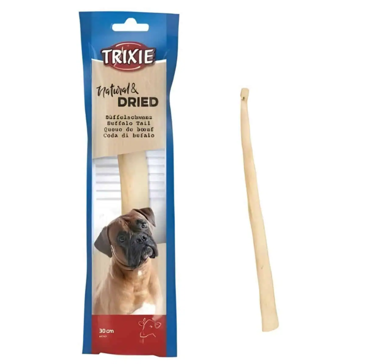عظم مضغ ذيل الجاموس من تريكسي يوفر مضغاً طبيعياً طويل الأمد، يدعم صحة الأسنان، يقلل الترسبات، ويناسب جميع سلالات الكلاب.