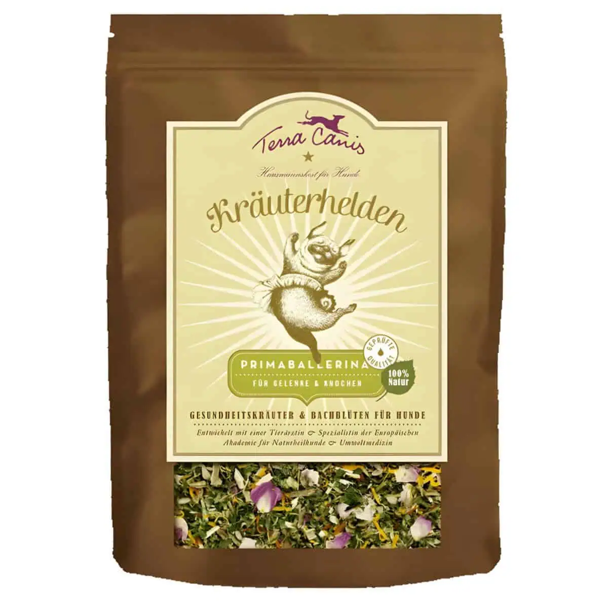 مكمل تيرا كانيس هيربال هيروز بريما باليرينا الغذائي للكلاب 100 غرام هو مكمل غذائي نباتي طبيعي تم تطويره لدعم صحة المفاصل والحركة لدى الكلاب التي تعاني من تيبس أو إجهاد مفصلي.