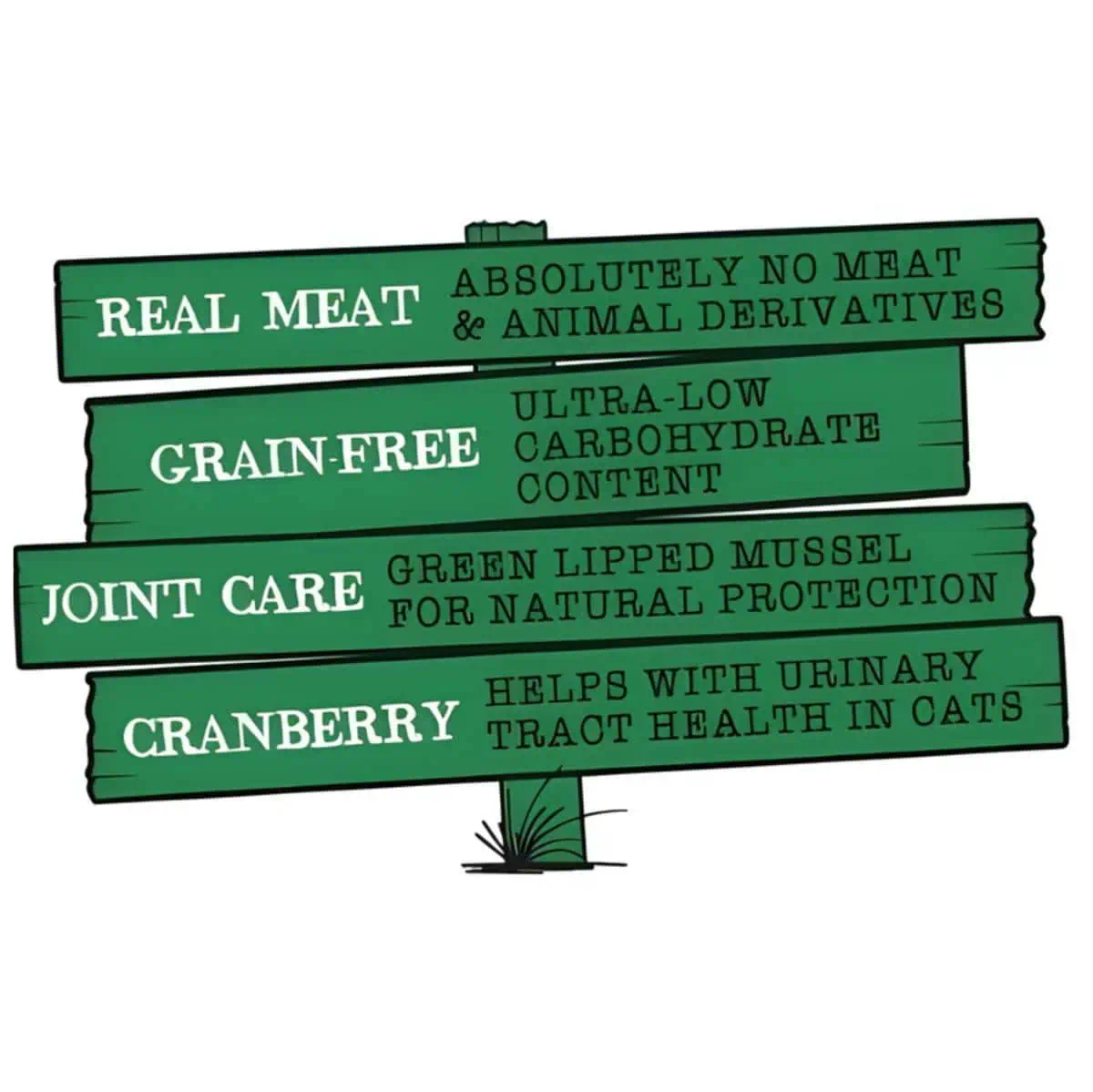 طعام رطب للقطط خالٍ من الحبوب يحتوي على 80% دجاج وبط، منخفض الكربوهيدرات، وبلح البحر الأخضر لدعم الهضم والمفاصل وصحة الفراء.