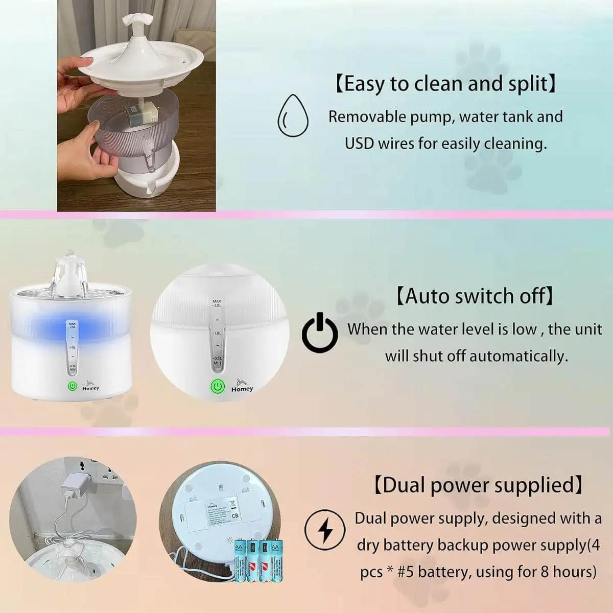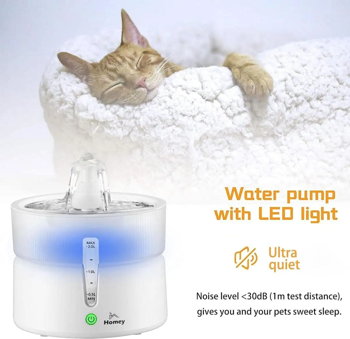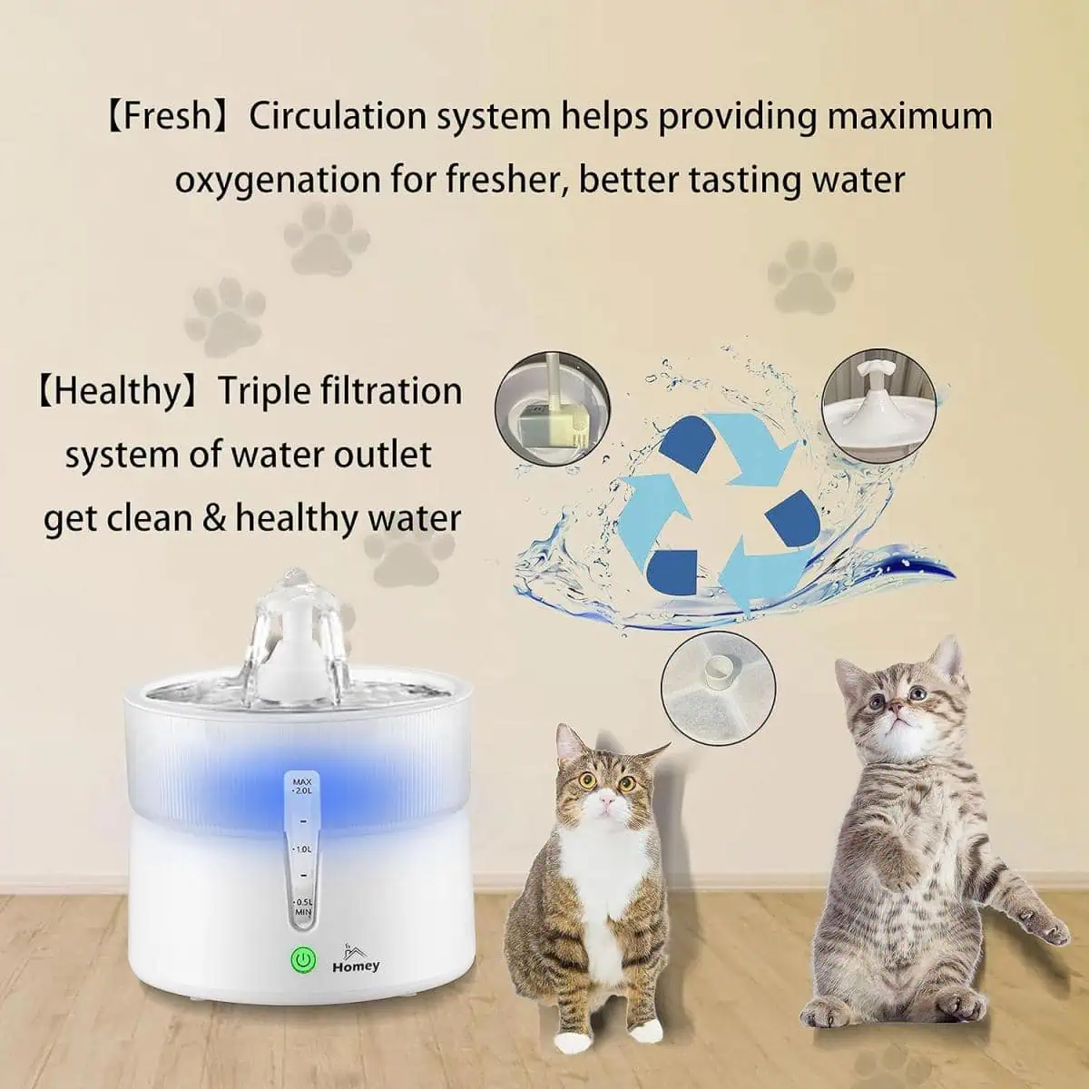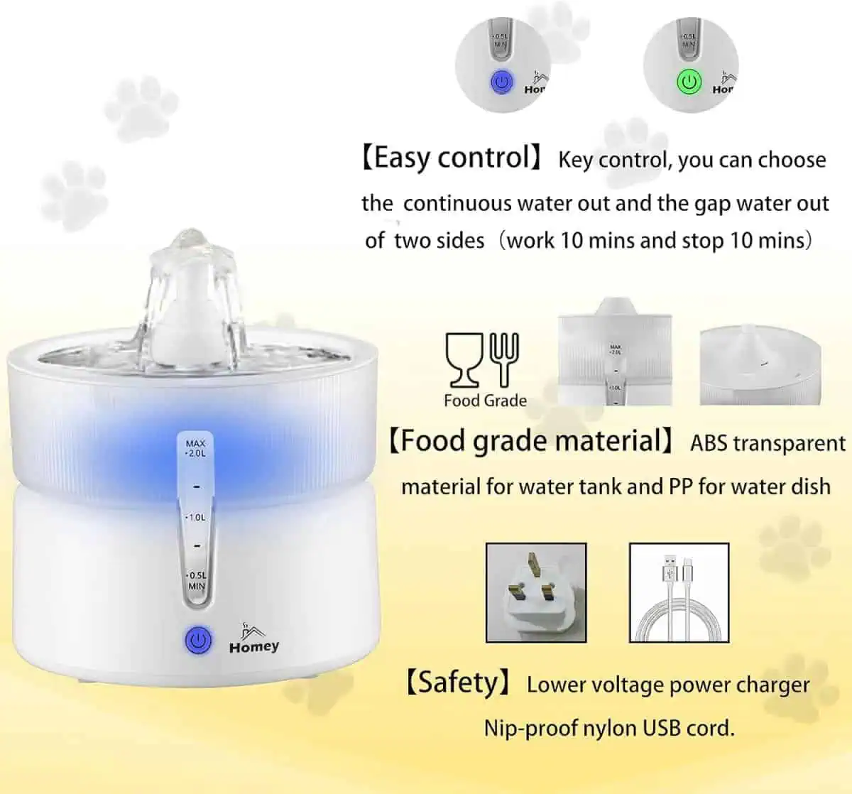 حافظ على ترطيب أليفك مع نافورة مياه هومي بسعة 2.0 لتر. تتميز بتشغيل فائق الهدوء، نظام ترشيح ثلاثي، ومصدر طاقة مزدوج (USB وبطارية) لضمان مياه عذبة على مدار الساعة. مثالية للقطط والكلاب الصغيرة. تسوق الآن!
