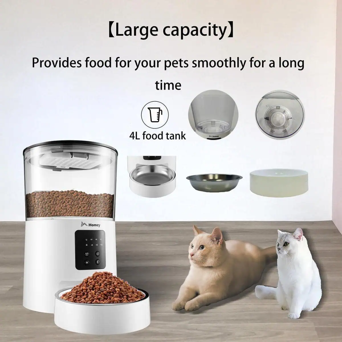 تم تصميم موزع طعام هومي (Homey) الأوتوماتيكي لتبسيط حياتك وتحسين صحة حيوانك الأليف. بفضل السعة الكبيرة التي تبلغ 4 لترات والجدولة الدقيقة، يمكنك ضبط ما يصل إلى 6 وجبات يومياً، مما يضمن لقطتك أو كلبك نظاماً غذائياً ثابتاً وصحياً حتى عندما لا تكون في المنزل.