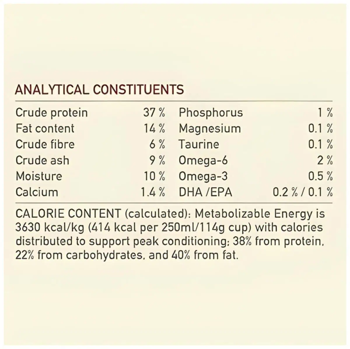 تحتوي هذه التركيبة الغنية بالعناصر الغذائية على ٦٥٪ من المكونات الحيوانية مثل الدجاج والديك الرومي الطازج أو النيء، والرنجة الكاملة. وهي مثالية للقطط التي تعيش في المنزل وتحتاج إلى نظام غذائي يدعم: