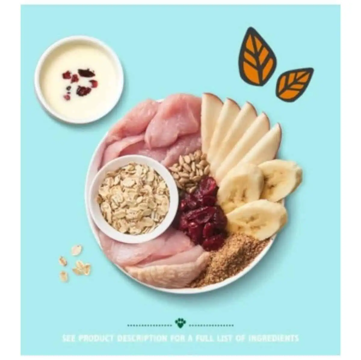 - لحوم طازجة محضرة: 30٪ دجاج وديك رومي كمصدر بروتين عالي الجودة.