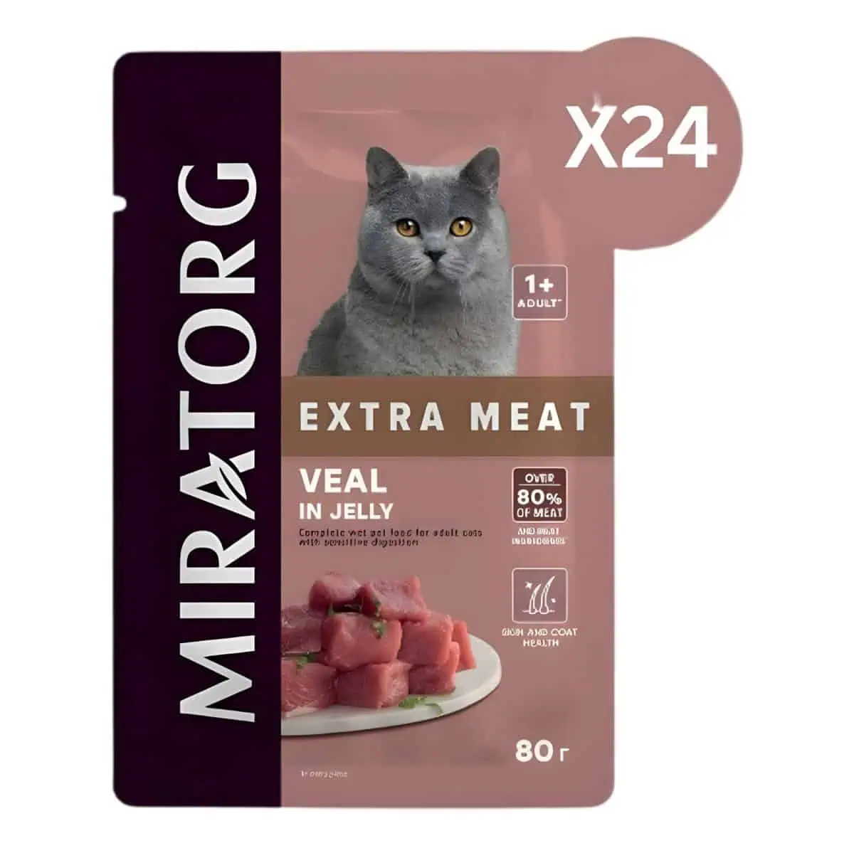 ميراتورغ عجل في جيل طعام قطط رطب – تركيبة إكسترا ميت