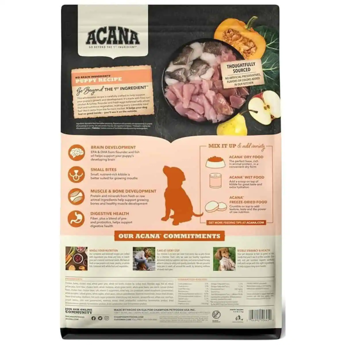 تُصنع مكونات أكانا من مزارع ومصائد موثوقة باستخدام أساليب مستدامة وأخلاقية. تحاكي هذه الصيغة النظام الغذائي الطبيعي للجراء لتمنح وجبة مغذية ولذيذة في الوقت نفسه.