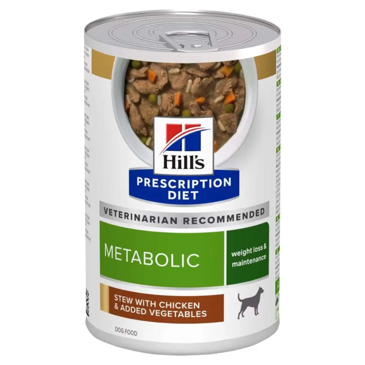 طعام الكلاب المعلب هيلز دايت ميتابوليك لإدارة الوزن - يخنة الخضروات والدجاج هو نظام غذائي مُثبت سريريًا مصمم خصيصًا لمساعدة الكلاب على فقدان الوزن والحفاظ على وزن صحي. تم تطوير هذا الطعام من قبل الأطباء البيطريين وخبراء التغذية ليستهدف عملية الأيض لدى كلبك لضمان فقدان الوزن بشكل آمن وفعال مع الحفاظ على شعور كلبك بالشبع بين الوجبات.