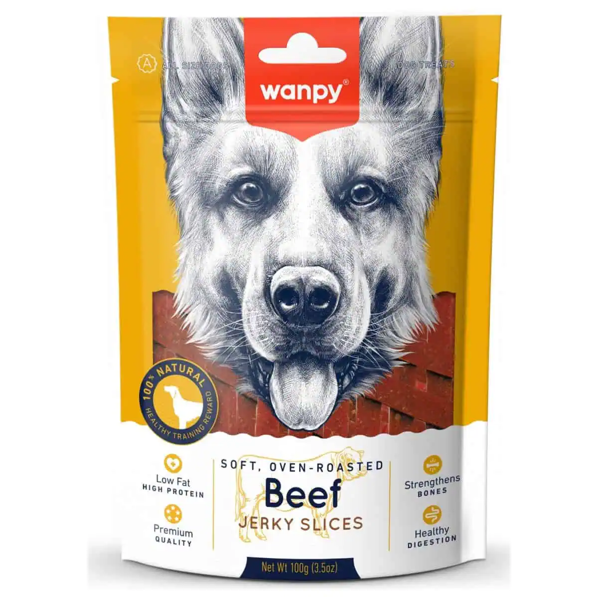 Choose Wanpy Soft Oven Roasted Beef Jerky Slices for a treat that combines flavor, nutrition, and quality. Your dog will thank you for it!