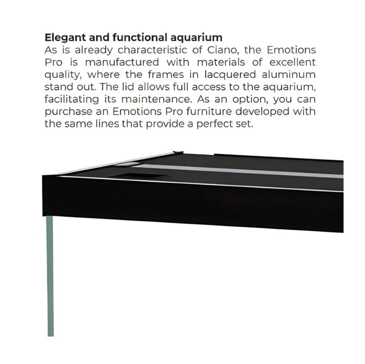 The Ciano Emotions Nature Pro 60 Aquarium is designed for hobbyists who want a perfect balance of elegance, performance, and durability. Built with precision and attention to detail, this aquarium features lacquered aluminum frames that add both strength and sophistication to your aquatic setup. With its stylish lines, modern design, and advanced equipment, it allows you to enjoy the full beauty of underwater life.