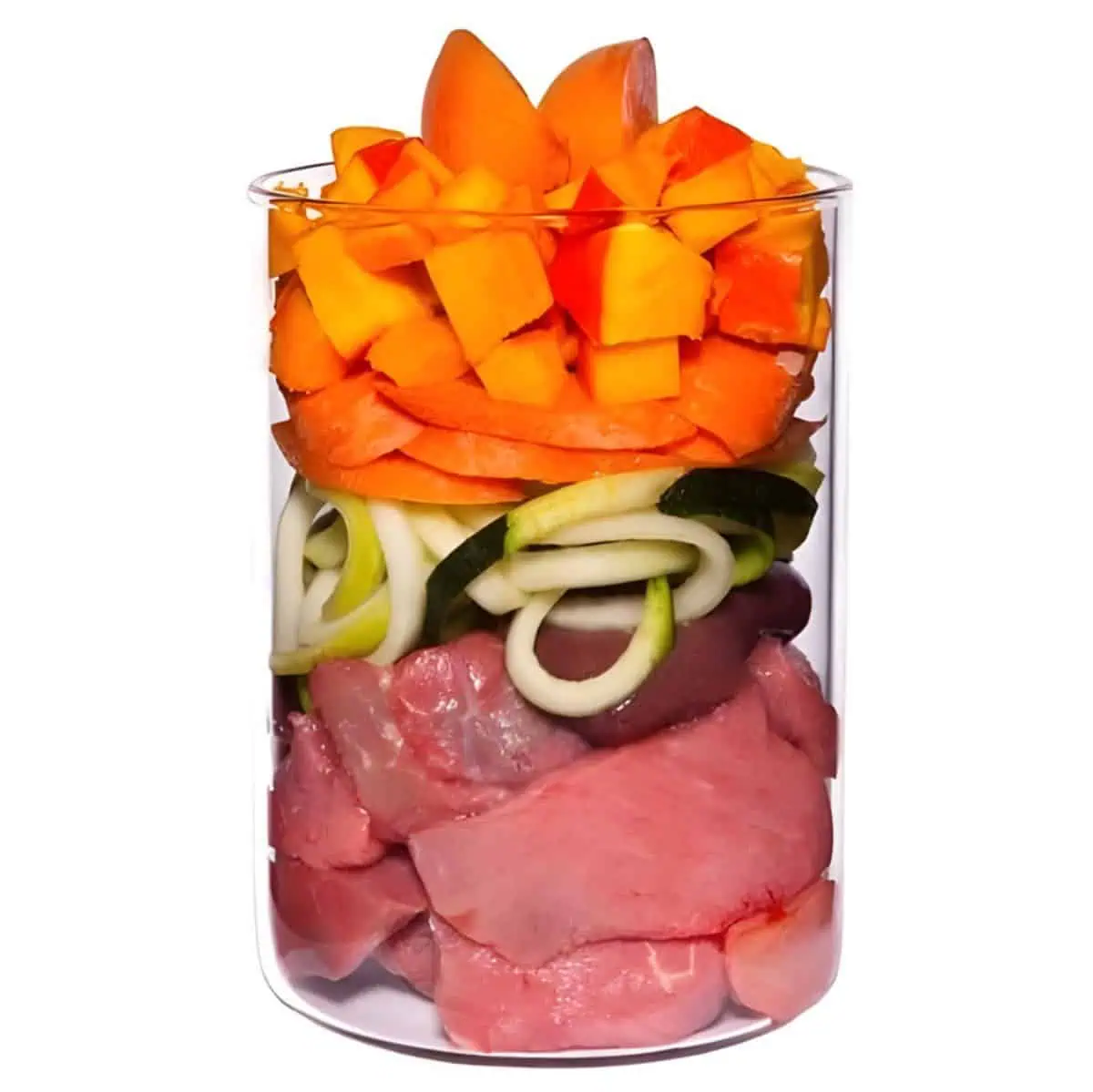- High meat content with fiber-rich vegetables