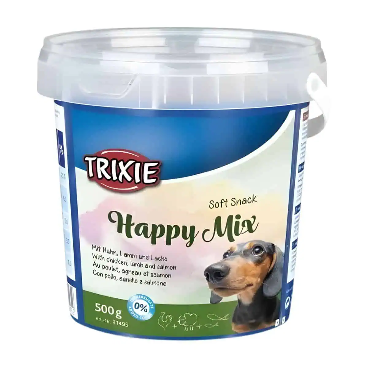 Trixie Soft Snack Happy Mix Dog Treats 500G – Delicious, healthy treats with poultry, lamb, and salmon for happy, energetic dogs.