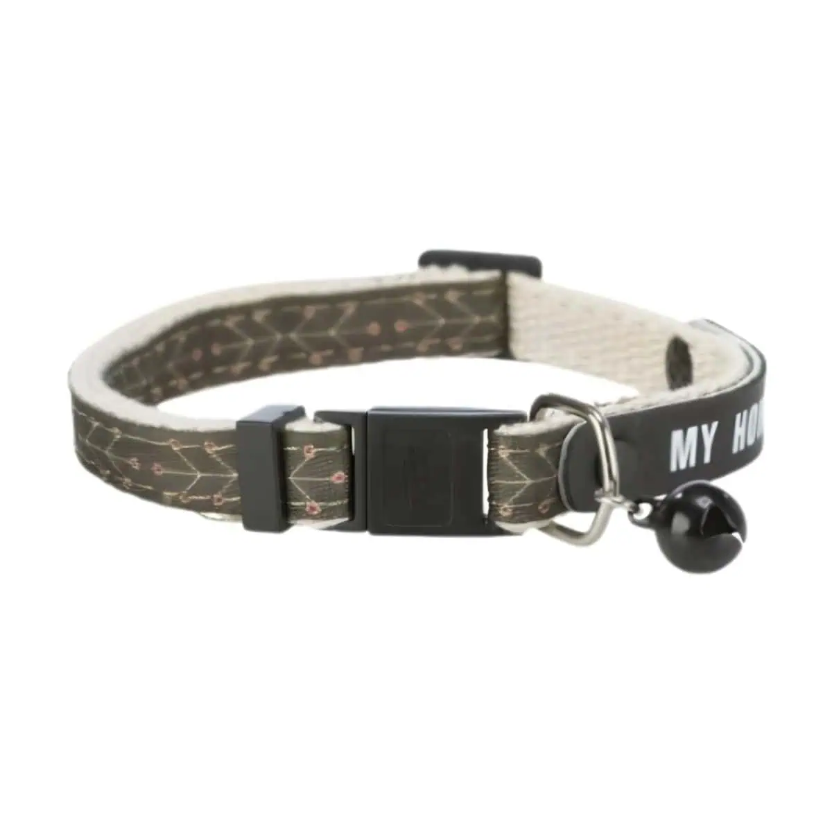 With its charming ornament print design and elegant color combination of olive green and beige, this collar adds a stylish touch to your cat’s appearance. The included bell helps you keep track of your feline friend while also alerting birds and wildlife.
