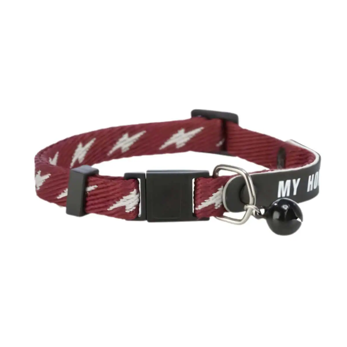 Trixie cat collar with flash address tag features adjustable fit, safety clasp, bell, and visible contact details for adult cats.