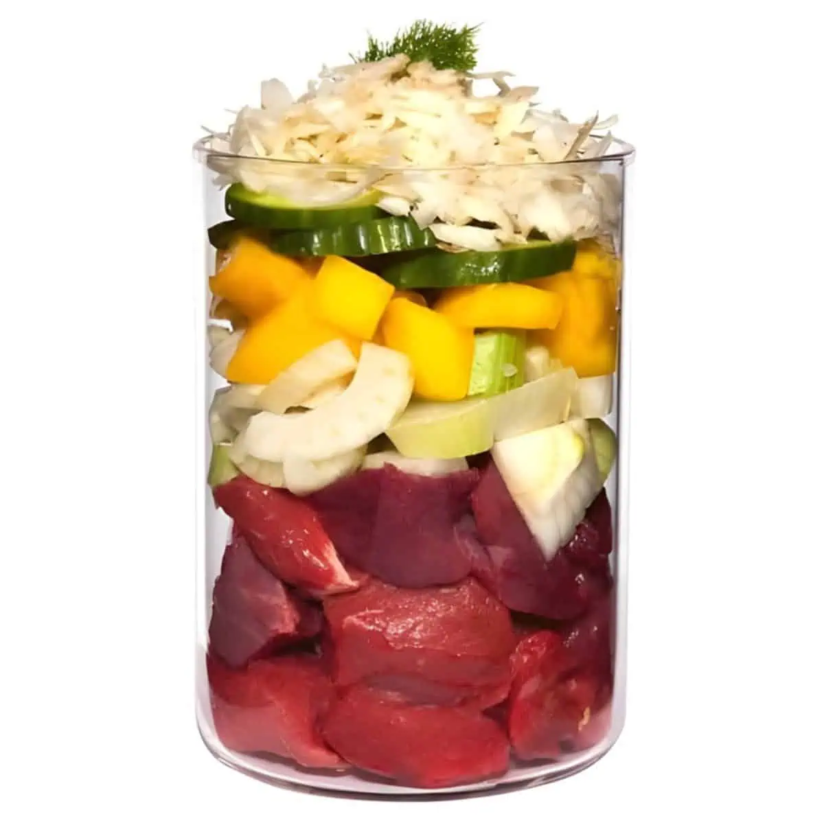 The formula contains lean beef heart and lung, balanced with pumpkin, cucumber, fennel, and low-calorie fruits like mango. This combination ensures protein intake while controlling fat and calories.