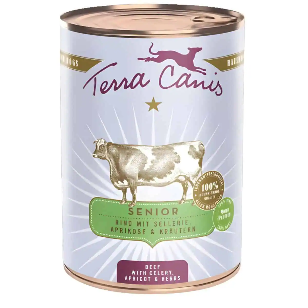 Terra Canis Senior Beef with Celery, Apricot & Herbs Dog Wet Food 400g is a complete, grain-free wet food specially developed to meet the nutritional needs of older and senior dogs. With a high meat content and carefully selected plant ingredients, this menu supports vitality, digestion, and organ health during the aging process.