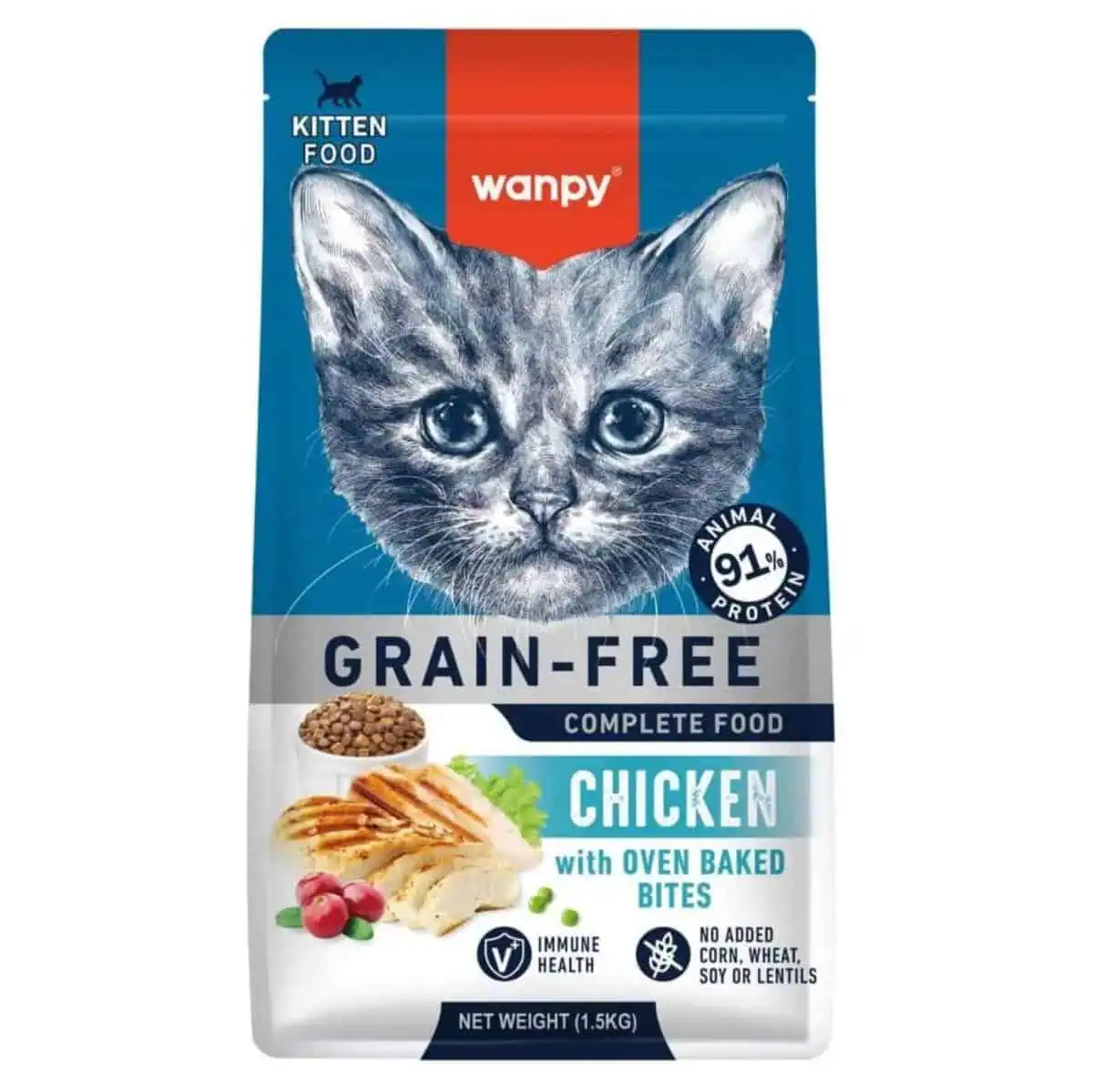 Wanpy Grain-Free Kitten Food Chicken Recipe offers premium protein, vitamins, and probiotics for healthy growth, digestion, and shiny coat.