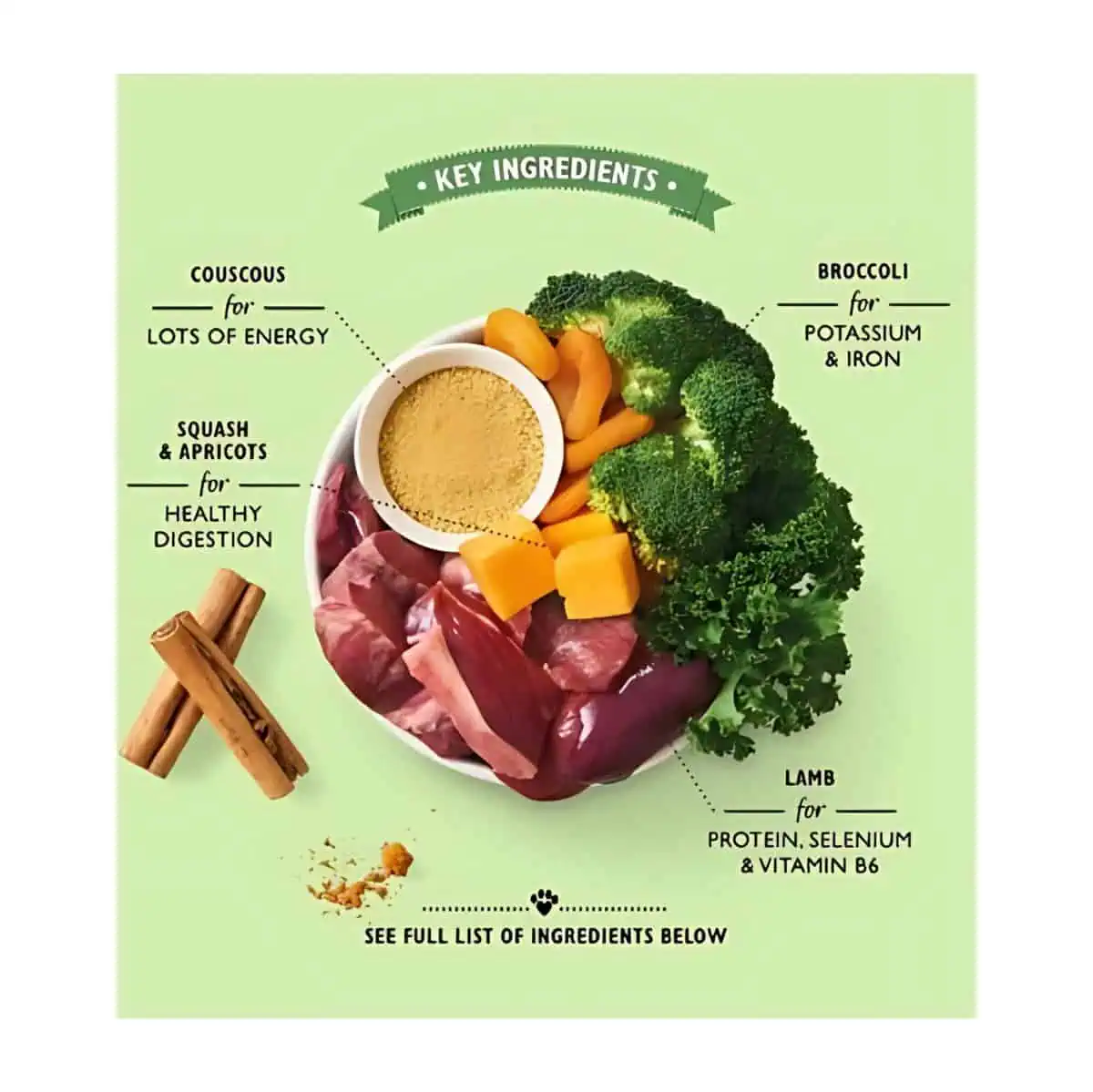 Key Features Single-sourced protein, gentle on digestion, includes couscous, apricots & cinnamon