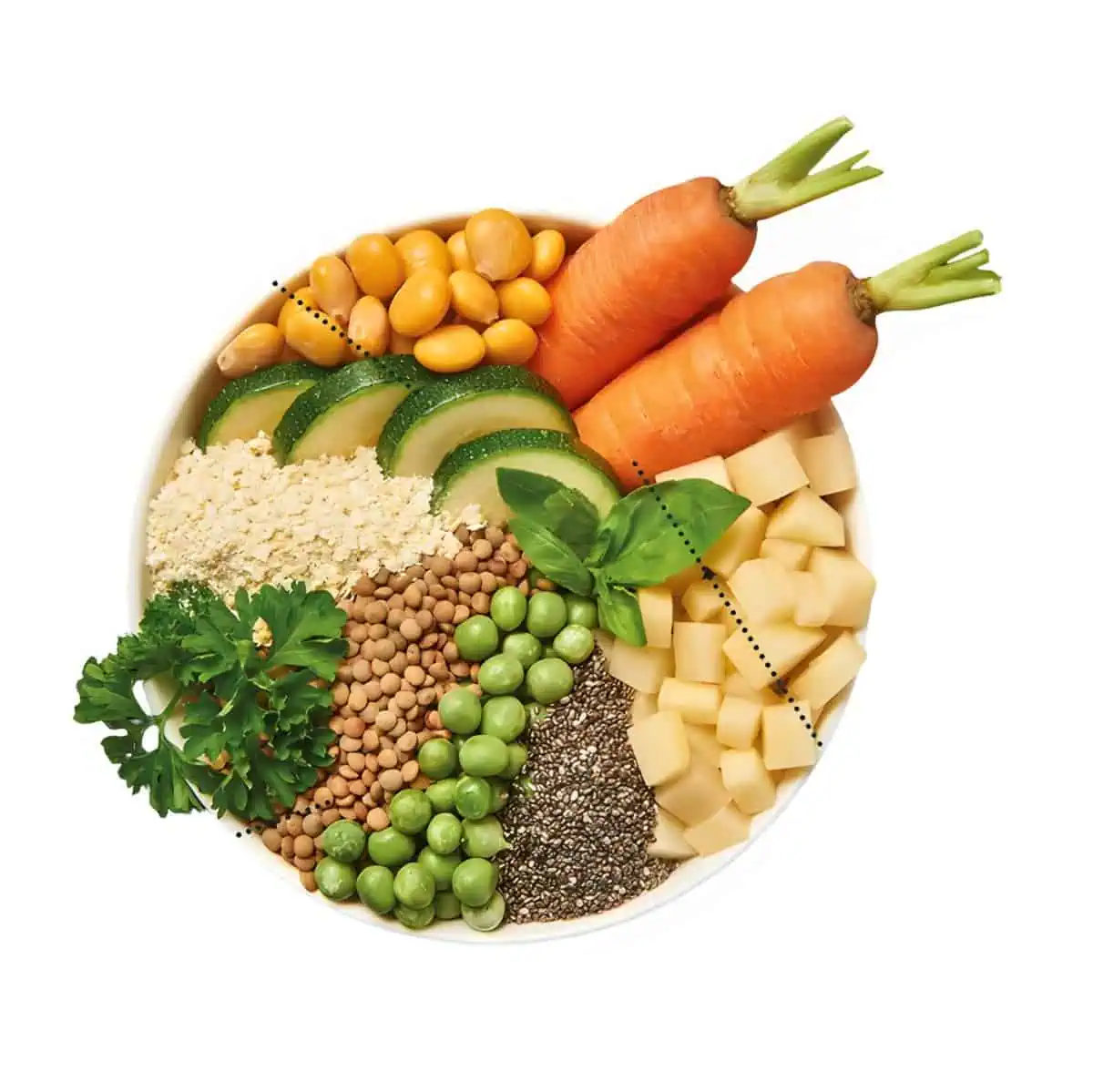 This vegan dog food combines freshly prepared vegetables and superfoods to keep your pup strong, active, and happy. Featuring courgettes, carrots, lentils, millet, peas, and sunflower seeds, this recipe provides all the essential nutrients your dog needs—without any meat or animal by-products.