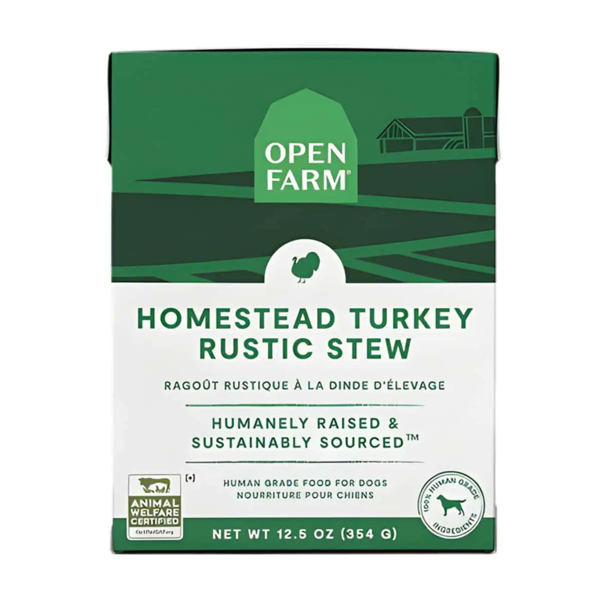 Open Farm Turkey Rustic Stew 354G provides high-quality protein, superfood vegetables, and a delicious stew texture for a meal that supports overall health and satisfies even picky eaters.