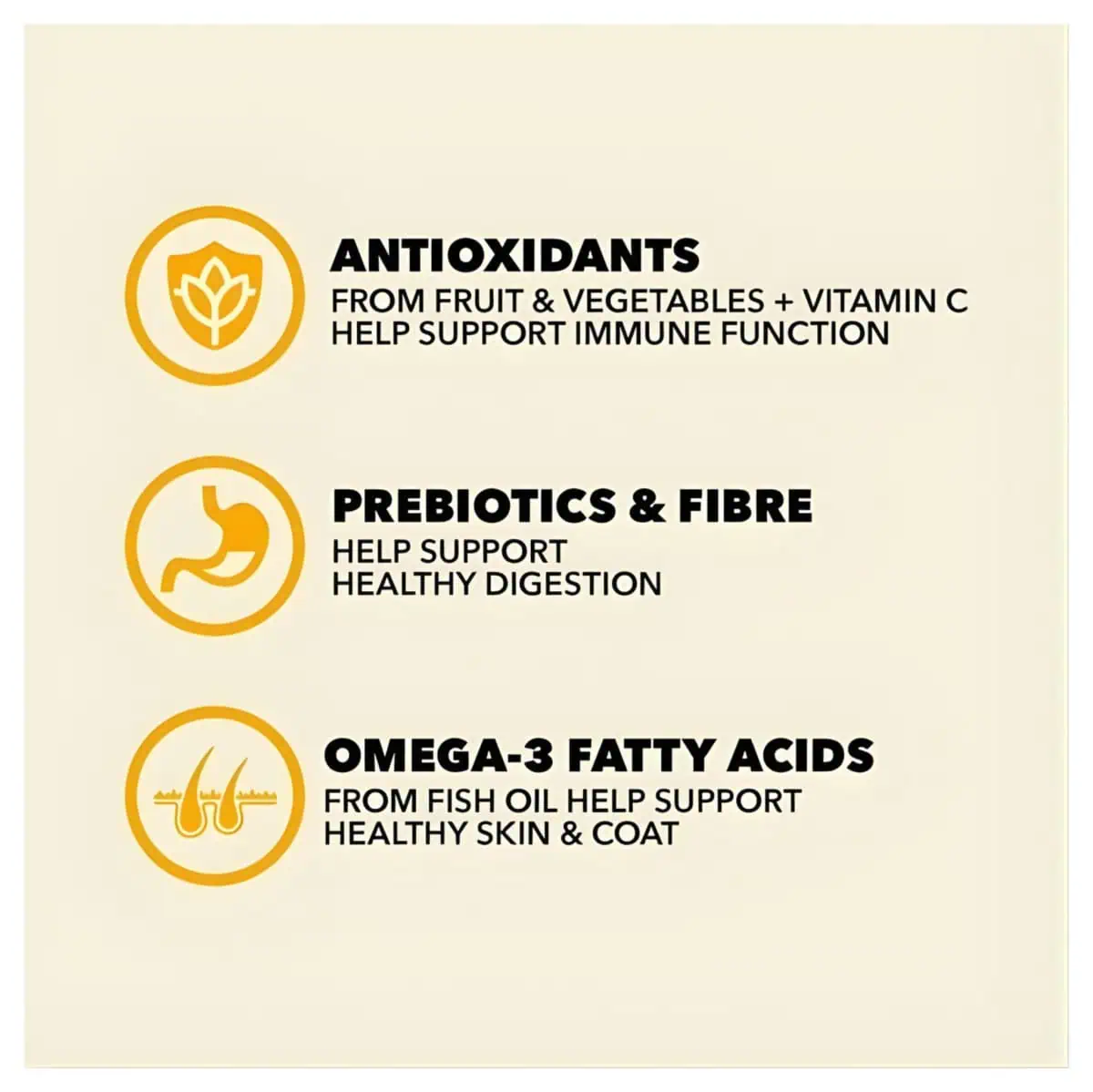 - Skin & Coat Health: Rich in Omega-3 fatty acids from fish oil for soft skin and a shiny coat.