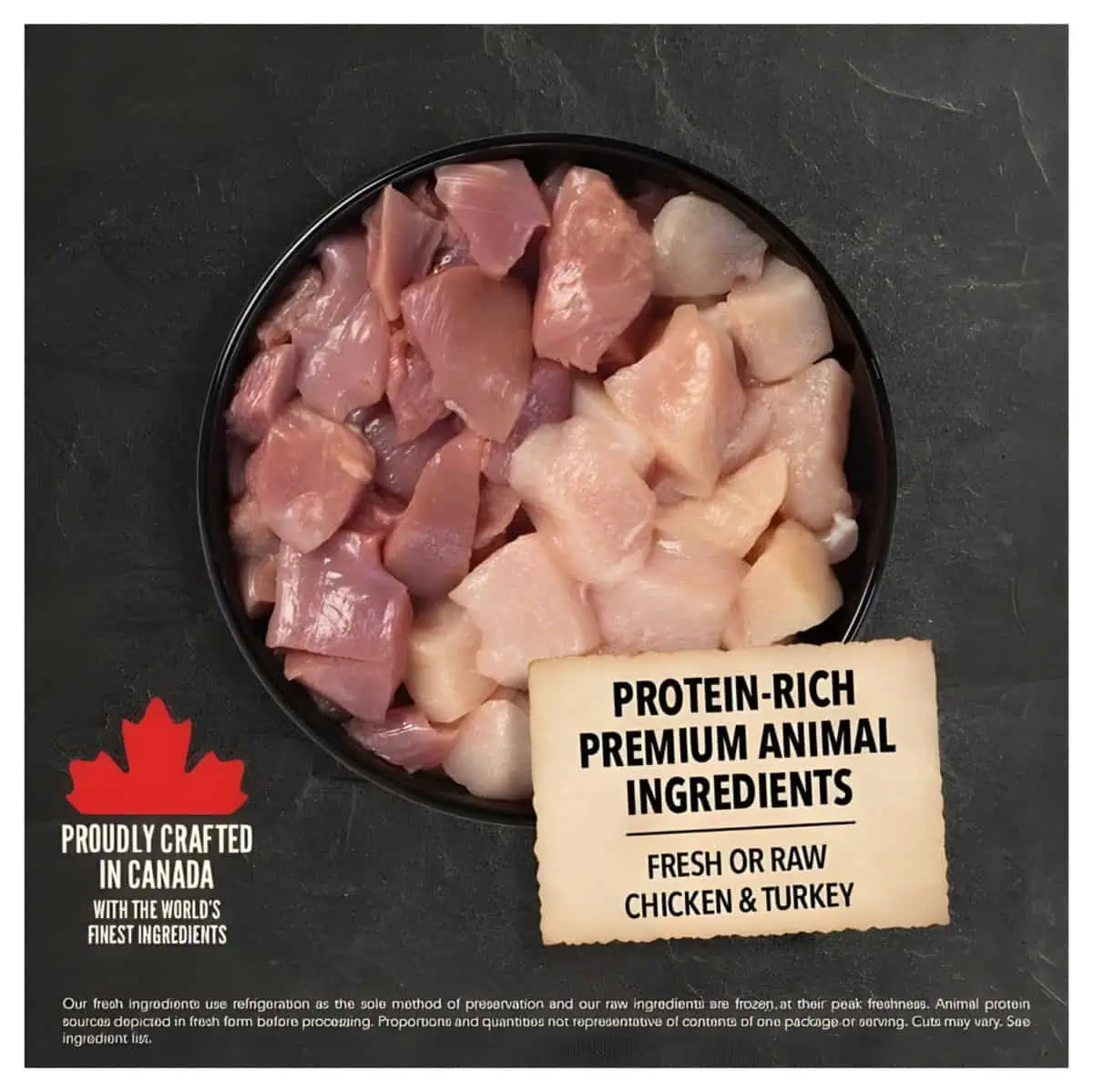Adjust the feeding portions according to your dog’s weight, activity level, and age. Always ensure fresh, clean water is available.