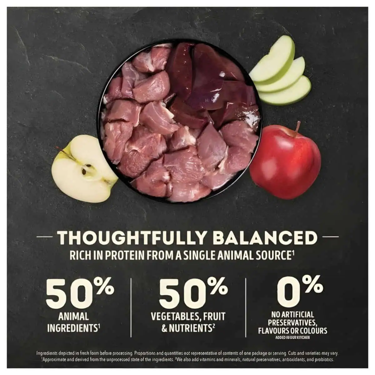 This limited ingredient recipe contains 50% premium animal ingredients from grass-fed lamb and 50% fresh fruits, vegetables, and nutrients. Rich in protein and essential fatty acids, it promotes lean muscle development, a shiny coat, and strong immunity.