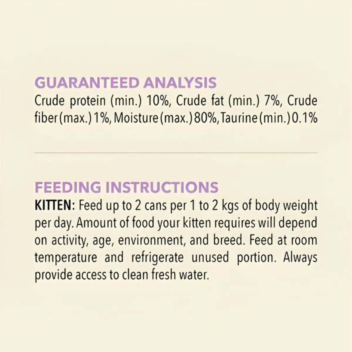 Serve at room temperature for maximum aroma and palatability. Adjust the daily feeding portion based on your cat’s age, weight, and activity level. Always provide fresh water. Once opened, refrigerate and use within 24 hours.
